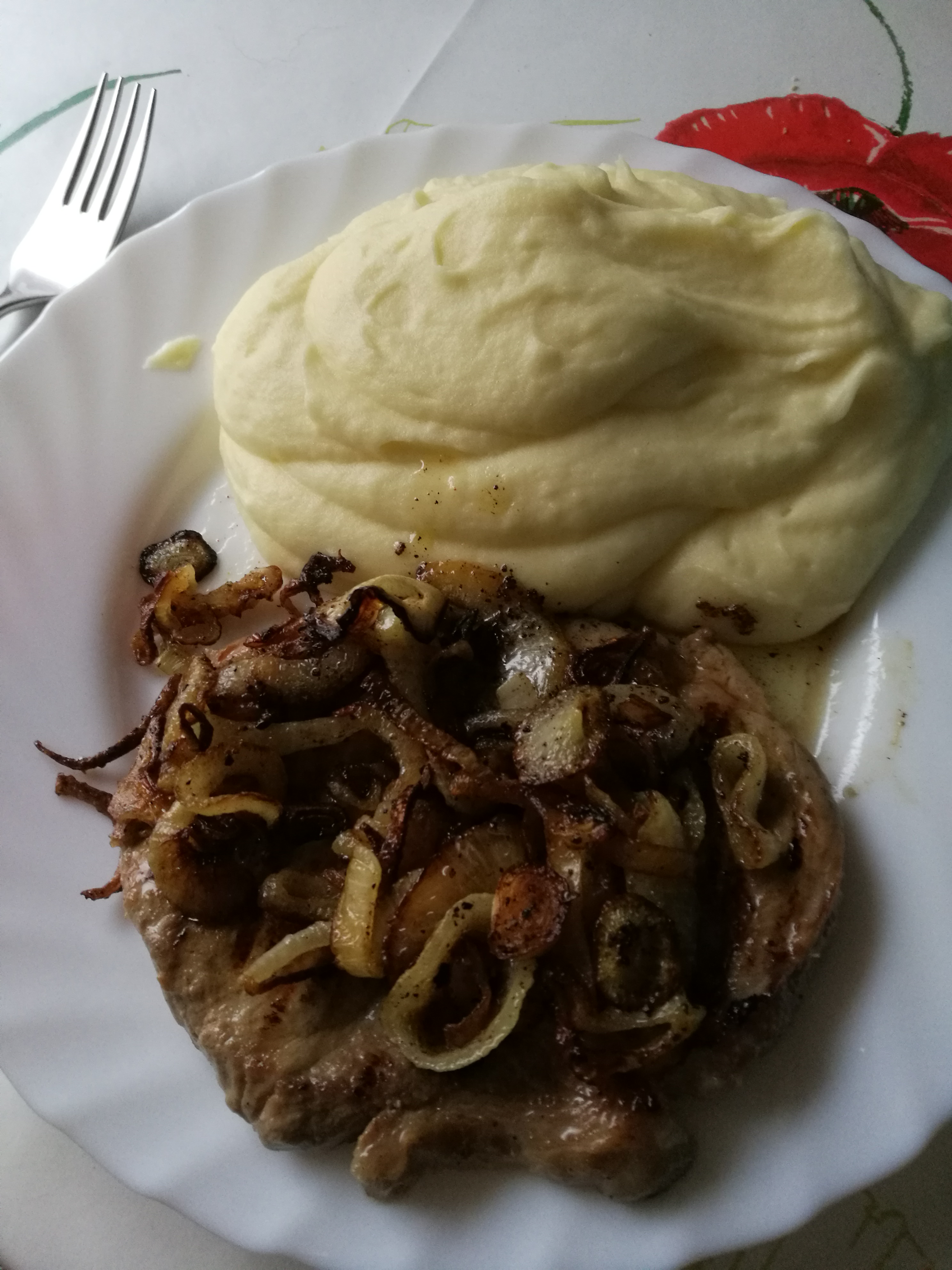 - Die Zwiebeln in Ringe schneiden, mit Senf, Knoblauch, Salz, Pfeffer und Bier zu einer Marinade mischen.